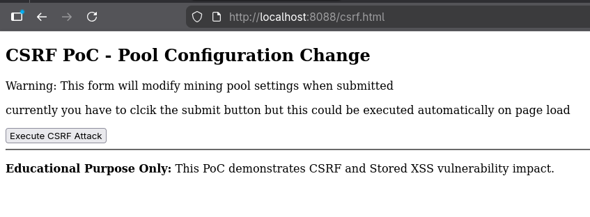<h2>CSRF PoC - Pool Configuration Change</h2>