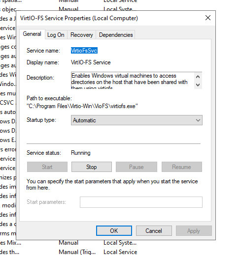 For the file system to be mounted you need to start and configure the VirtioFsSvc service to Automatic startup.
